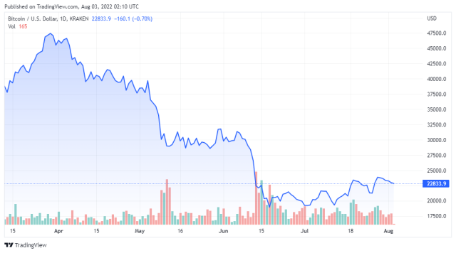 BTC price chart for 08/02/2022 on Kraken | Source: BTC/USD on TradingView.com