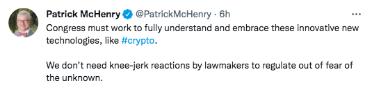 North Carolina Rep Patrick McHenry started the hearing with the right foot as he pondered on a way to ensure further growth of the crypto industry that happens inside the U.S. instead of overseas. He was against the well-known demonization of the entire industry based on a few bad actors and called for the need to understand it better.