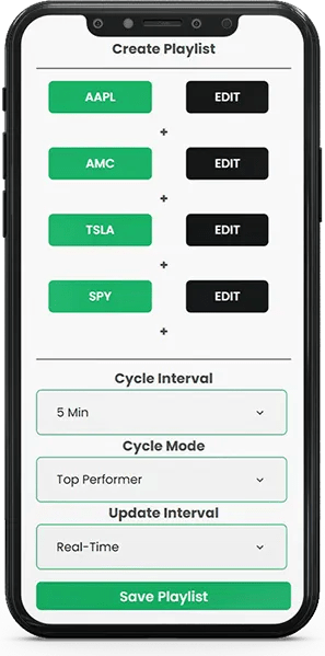 An additional unique feature involves daisy chaining several of these devices together by stacking them on top of one another, essentially creating a full watchlist of TickrMeters. As such, the device can be purchased as a single, two-pack, three-pack, or six-pack. Up to ten can be stacked together in one chain. With only one device, there is also a way to create a playlist that cycles through a custom selection of ticker symbols randomly, in order, or based on the day’s winners or losers.