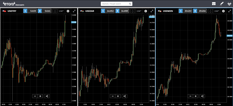 Similar to what we saw in August, the emerging market currencies are getting the biggest wallop. Here we can see the Lira, Rand, and Peso getting bucked.