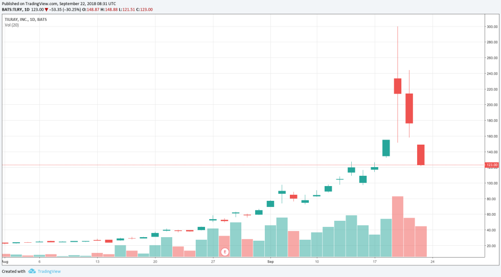 Tilray was the name on everyone’s lips this week. On Tuesday the Canadian company announced DEA approval to export a cannabinoid study drug into the US for clinical tests. TLRY stock jumped from around $120 to almost $300, as it saw $15 billion in volume from Monday to Thursday.