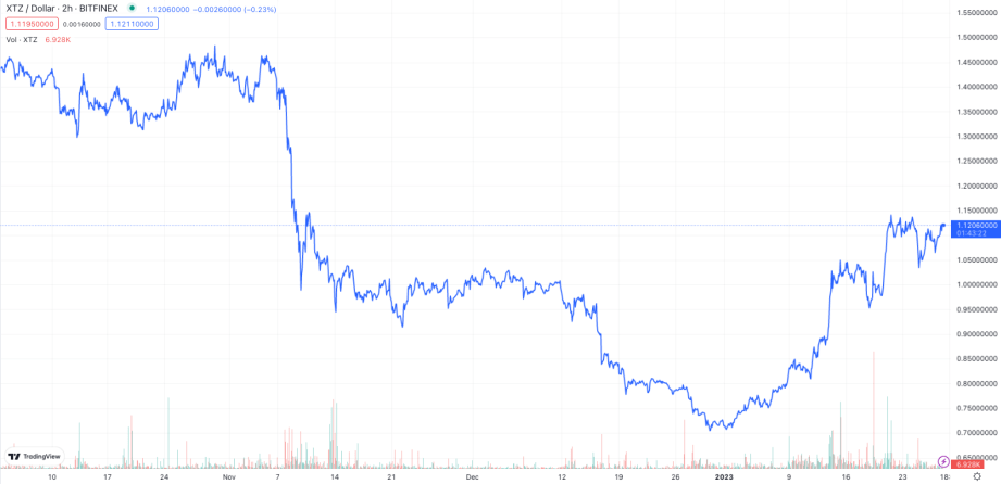 Tezos (XTZ) will be the utilized blockchain for an upcoming California DMV pilot project. | Source: XTZ-USD on TradingView.com
