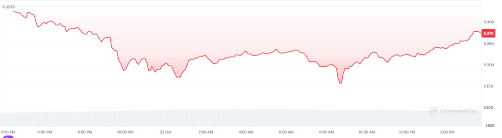 The network woes also extend to the market price of its native coin, Toncoin. TON’s dip in user base comes at a time when its native token is also struggling to sustain its upward price momentum. As of October 22nd, Toncoin is trading between $5.20 and $5.30, struggling to revisit the $5.6 level hit last October 1st.