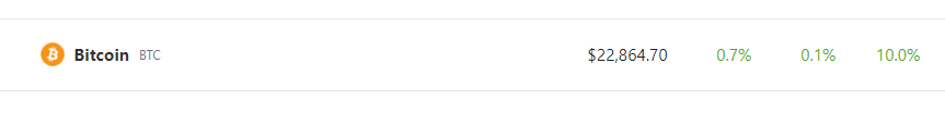 At the time of writing, Bitcoin is nearing the $23K mark with a price of $22,915, up 10.0% in the last week.
