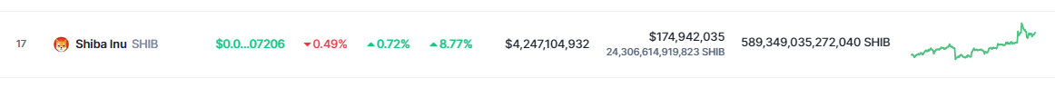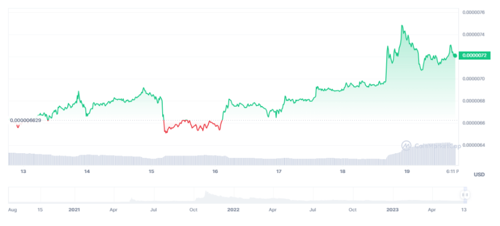 Shiba Inu has displayed promising signs of a price surge, as observed on CoinMarketCap. Currently valued at $0.000007206, SHIB has been able to sustain a notable 8.7% rally in the last seven days. These recent price movements have captured the attention of investors and sparked further interest in the potential of this meme coin.