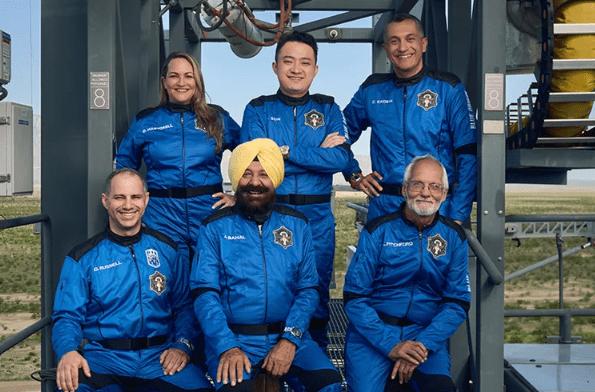 The latest Blue Origin crew consisting of Deborah Martorell, Justin Sun, Gökhan Erdem, J.D. Russell, Arvi Bahal and Lionel Pitchford.Credit (left to right). Credit: Blue Origin/Instagram.