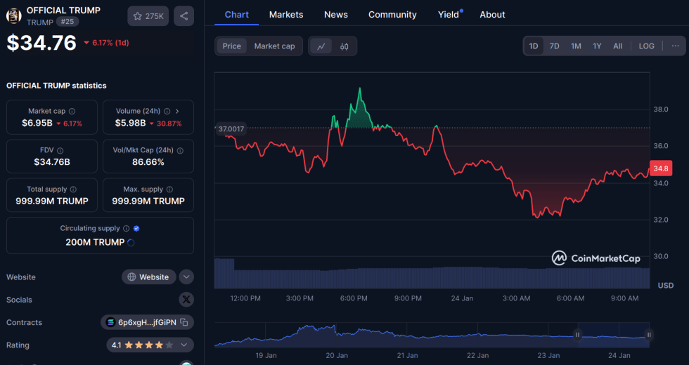 公式のトランプコインは1月17日、つまりトランプ大統領就任のわずか3日前にデビューを果たした。
