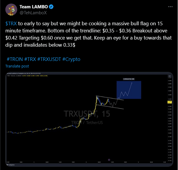 TRX crypto has seen a sharp rise due to favorable market conditions and excitement about XRP. The buzz around XRP has positively affected other cryptocurrencies, including TRX Tron. Reports show that Tron has reached a new 6-year high and is now close to its all-time high (ATH) of $0.4313, last reached in the same day – 4 of December 2024.