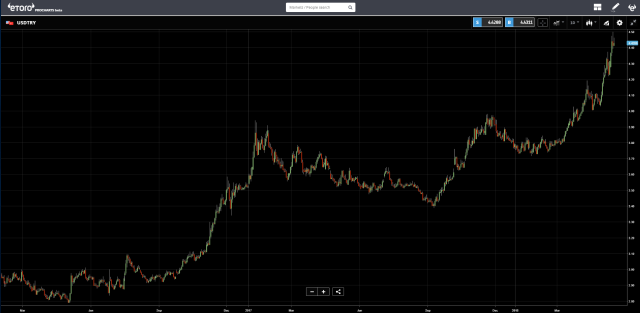 Bond Yields are tracking higher today, which does seem to be weighing down on the stock market at the moment.