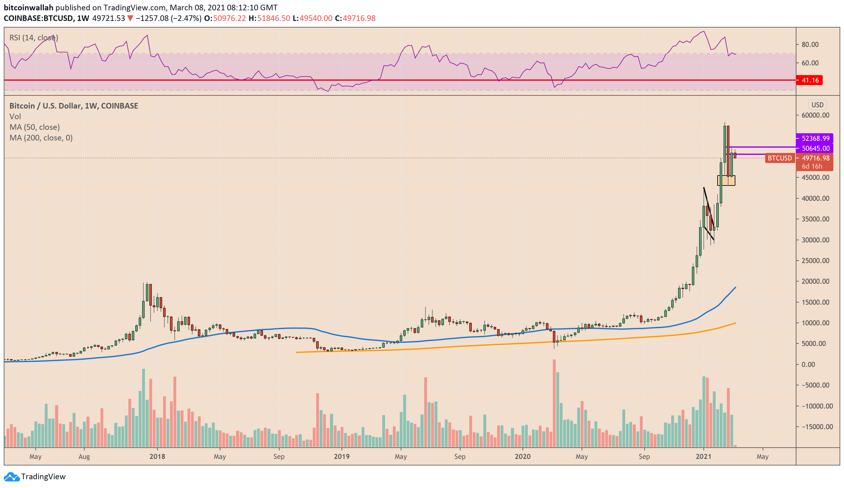 The BTC/USD exchange rate reached $58,367 in early February, its highest level on record. But the pair has since corrected by 12.66 percent per the latest readings. At its lowest, bitcoin was down 26.30 percent from the said historical peak.