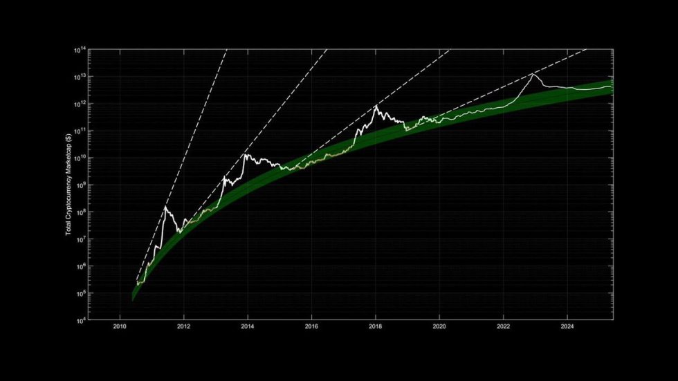 Popular YouTube crypto analyst, Benjamin Cowen, has been considering the logarithmic regression band for the total cryptocurrency market cap in his latest video, and based on his analysis, thinks that the total digital asset market cap could hit $10 trillion during the next bull run.