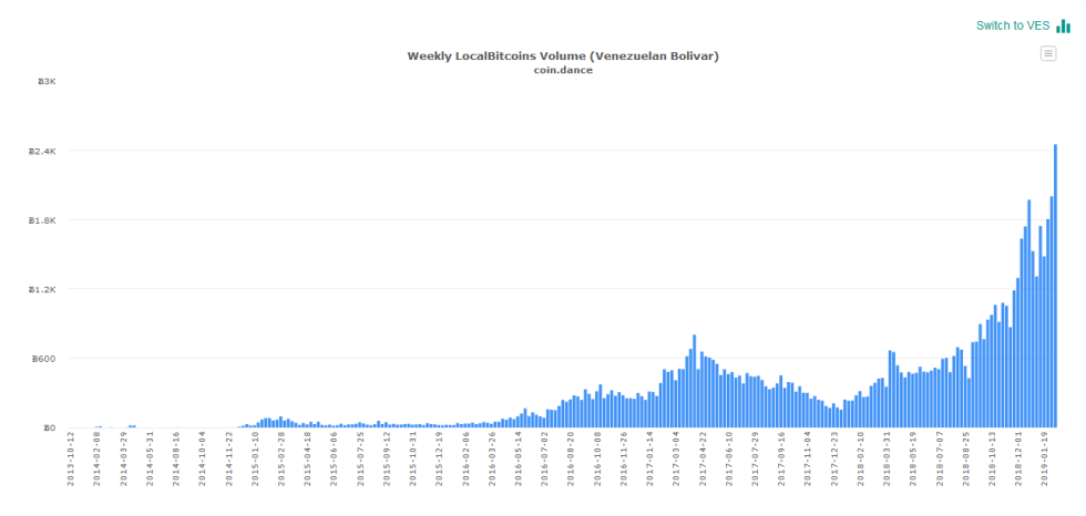 Last week’s volume amounts to the highest ever recorded in the country. In terms of VES, the country’s beleaguered fiat currency, 24 billion VES worth of Bitcoin changed hands during the period, an increase of 41 percent from the week ending February 2, 2019.