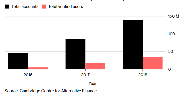 According to a study by the Cambridge Center for Alternative Finance, the number of verified cryptocurrency users has more than doubled in the first three-quarters of the year from 2017 figures. The study shows that there were 35 million authenticated cryptocurrency users as at the end of September 2018.