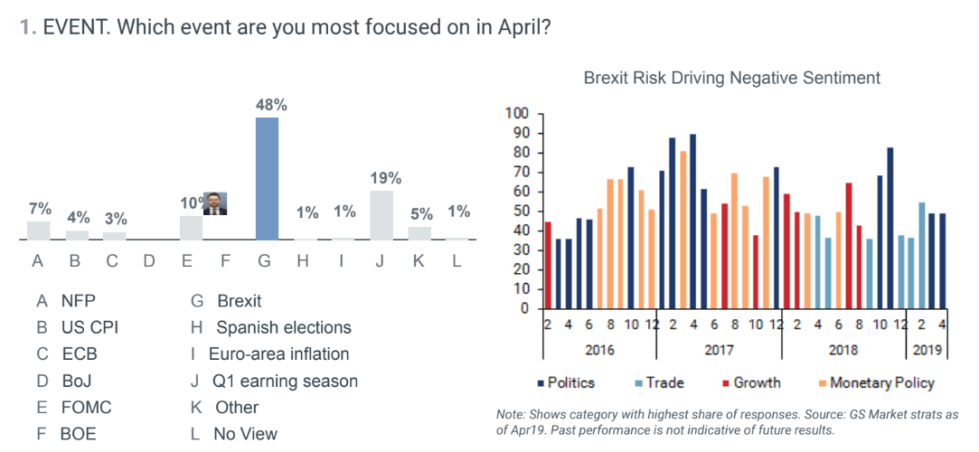 Indeed, for me anyway, global politics is becoming less of a concern by the day. In a recent poll from Goldman Sachs, 48% of respondents said that Brexit was their biggest focus in April.