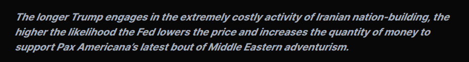 His reasoning goes back decades. According to Hayes, every sitting US president since 1985 has sent forces into the Middle East. Each time, the Federal Reserve followed by cutting interest rates or pumping more money into the financial system to help cover the costs.