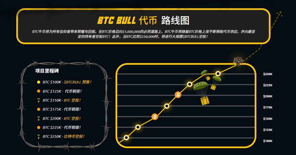 持有者在特定價格關卡($100K、$150K 及更高)時會獲得 $BTC 獎勵,而每達成一個里程碑,就會銷毀一部分 $BTCBULL 的供應量,從而提升稀缺性。