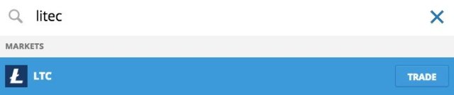 Step 3: Click on ‘Litecoin’ and press ‘Trade’