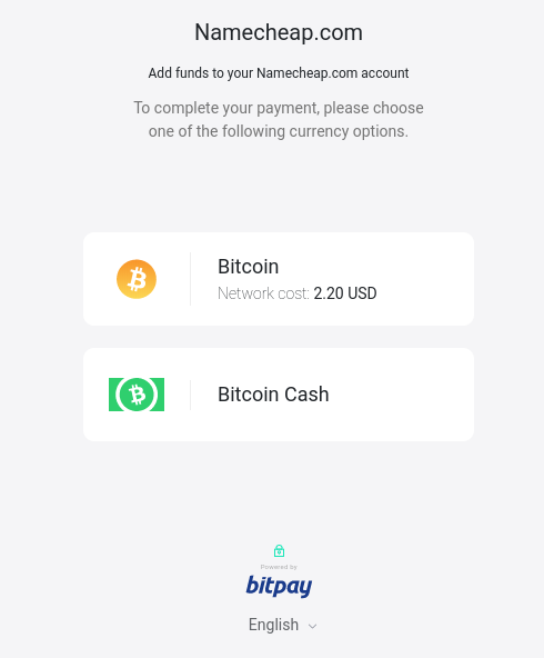 Confirmed by Bitcoinist, Namecheap allows you to top up an account using what it describes as “Bitcoin.”