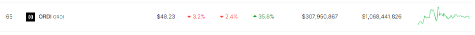 ORDI price in the last 24 hours. Source: Coingecko