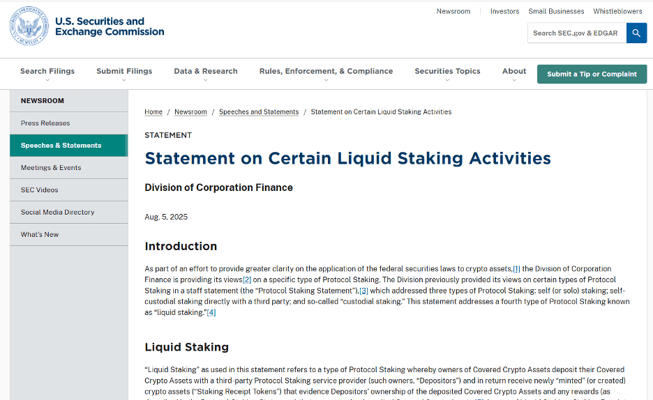 The staking milestone coincides with a significant regulatory signal. In recent discussions, SEC representatives indicated that simply operating or participating in a PoS network does not automatically make those activities a securities transaction.