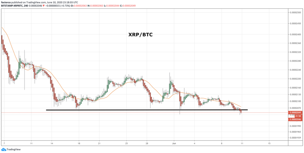 “Looks like Ripple Labs…has blown the wad allocated to support XRPBTC at .00002060 to .0002075 levels. If ice-line cannot be reclaimed, look for new support at .0000194 on way to .0000145,” he stated while pointing to the below chart.
