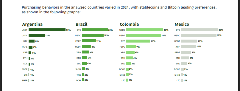Though XRP demonstrated impressive growth, Bitcoin and stablecoins are still the leading options among Latin American crypto users. Based on the Bitso report, Bitcoin represented 22% of the total purchases on the platform in 2024, a decrease from nearly 30% during the first half of the year.