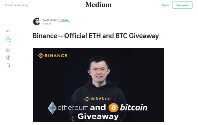 Following the link, it leads to a Medium article that was allegedly posted by Binance CEO Changpeng Zhao (CZ). Again, this is another classic crypto scam designed to steal funds from unsuspecting victims.